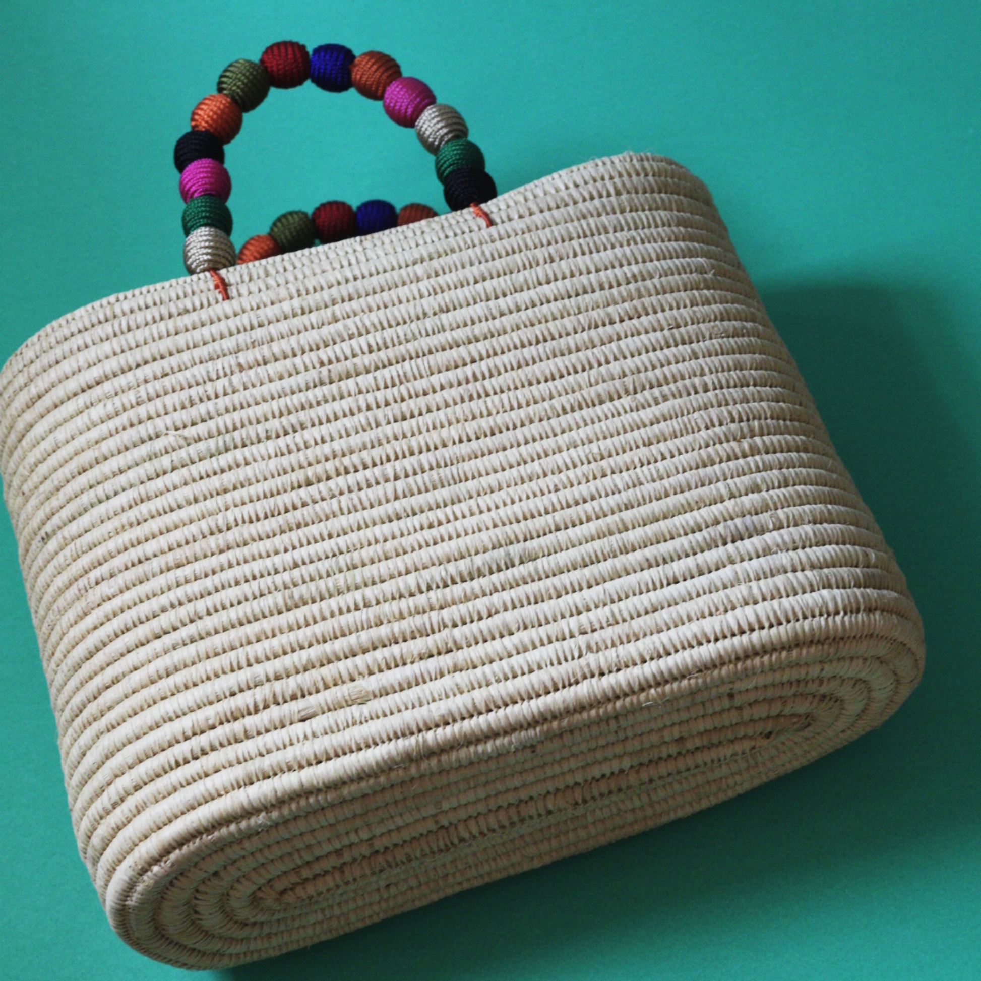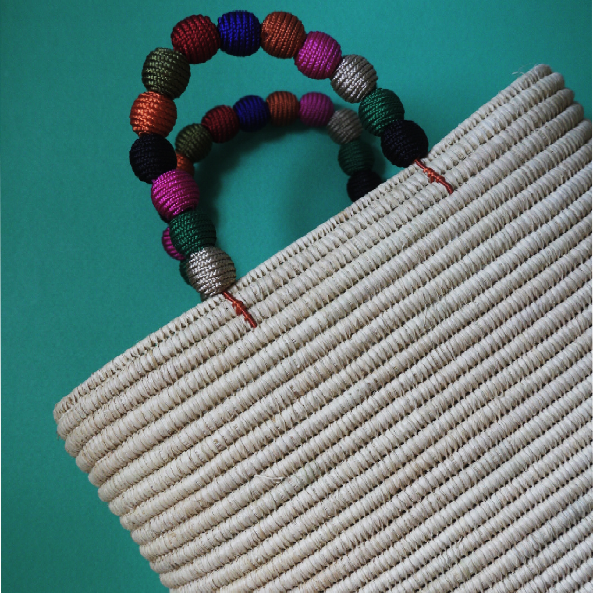 Moroccan Elegant woven raffia bag with sabra silk handles,